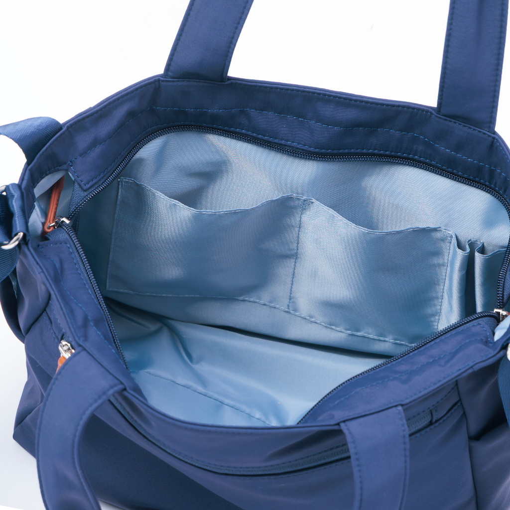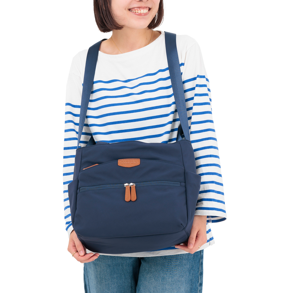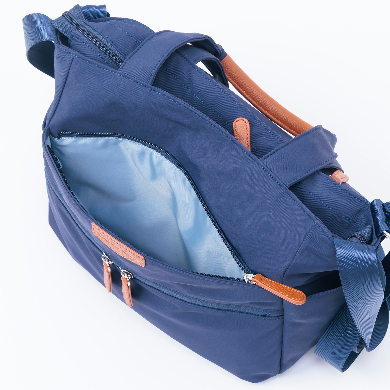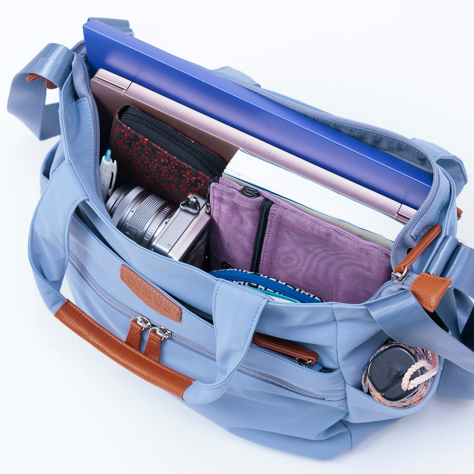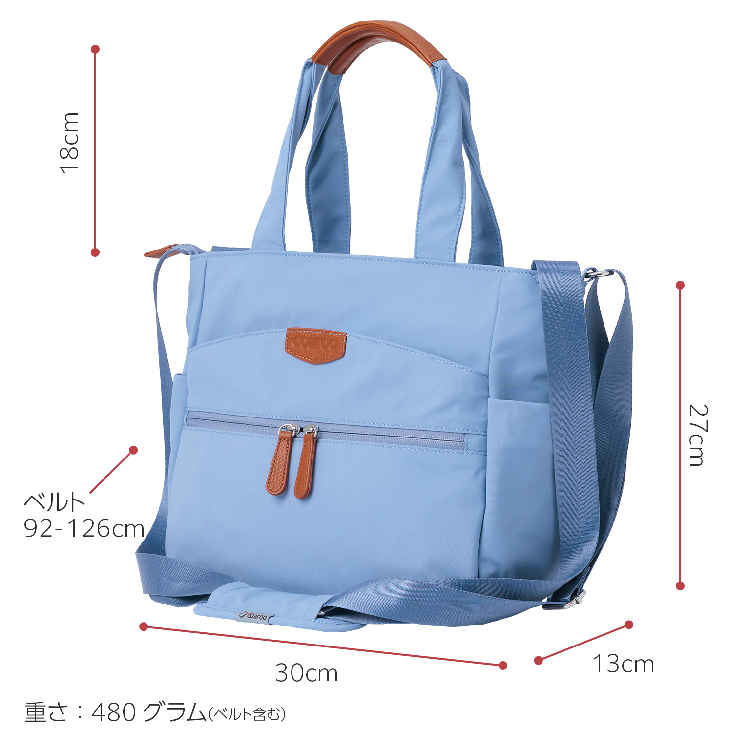 トートバッグから斜めがけ(肩掛け・ショルダー)、リュック、前抱え(前掛け・前バッグ)、メッセンジャーへと自由自在に変身し、シーンに合わせた使い方が可能。肩こりやなで肩、腰痛、足のケガ時にも負担の少ない掛け方ができるのもポイント。