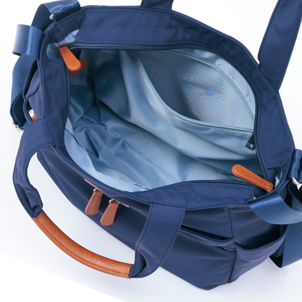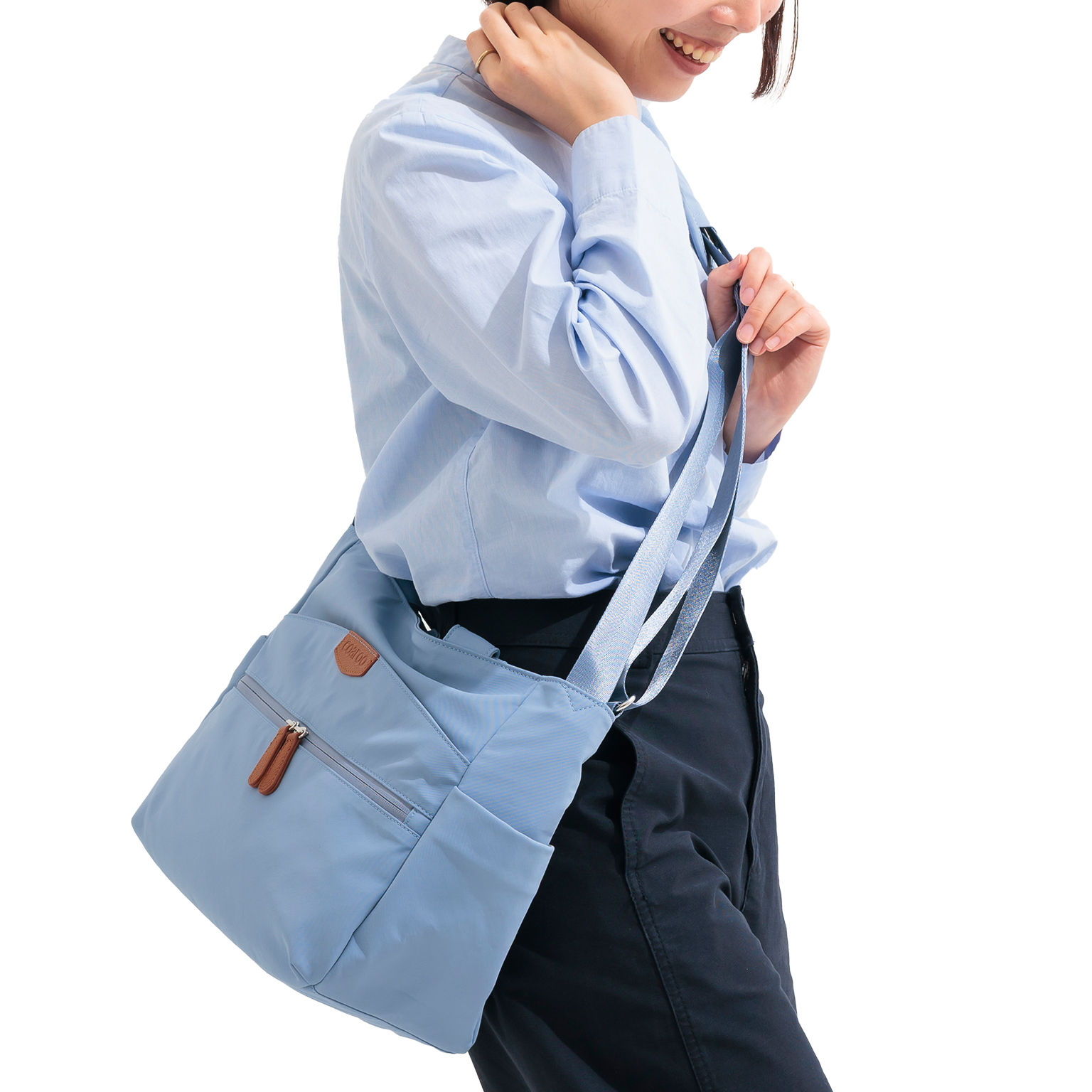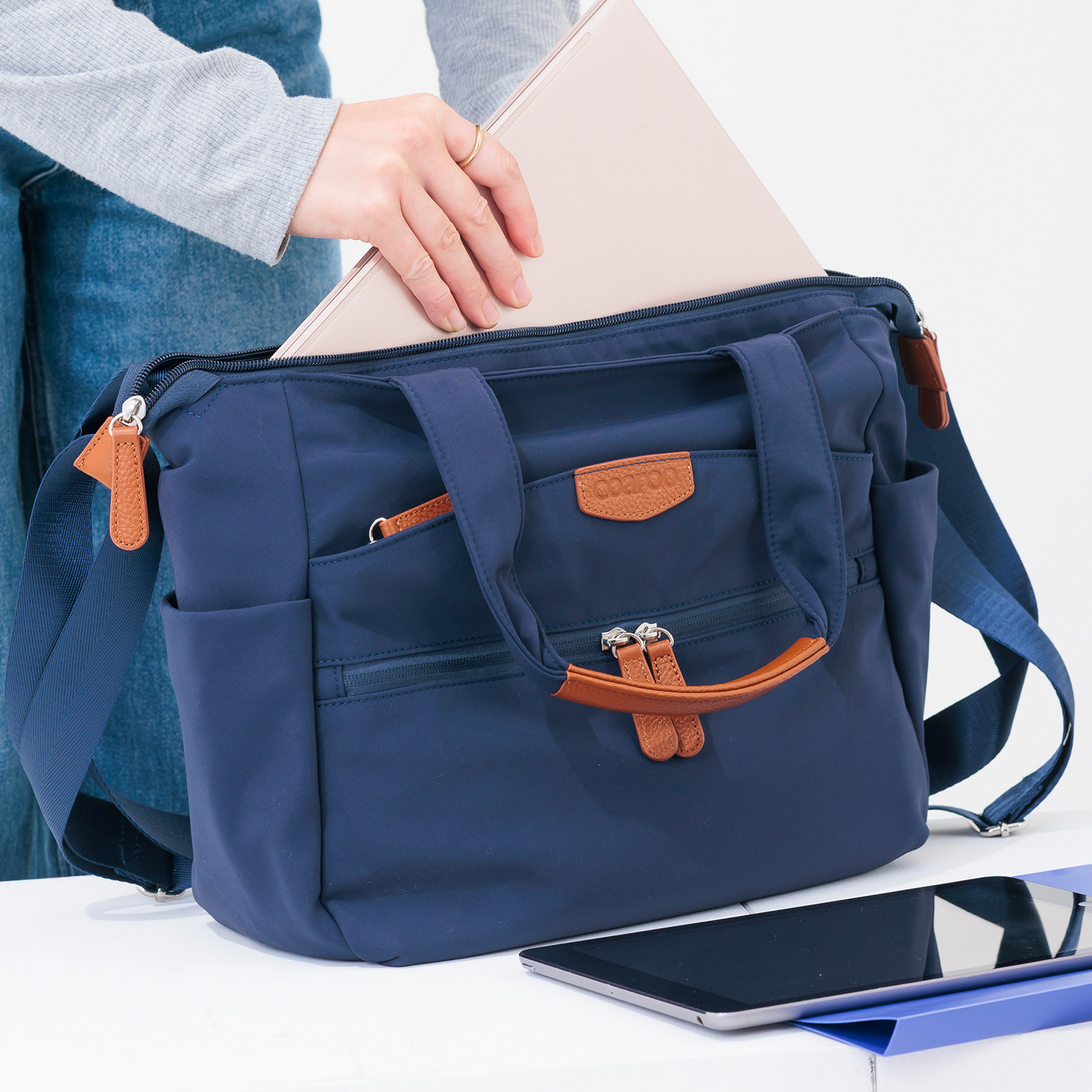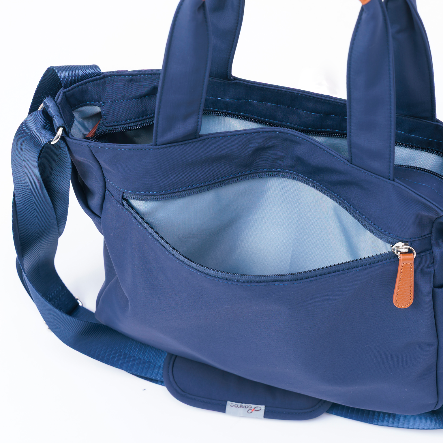 トートバッグから斜めがけ(肩掛け・ショルダー)、リュック、前抱え(前掛け・前バッグ)、メッセンジャーへと自由自在に変身し、シーンに合わせた使い方が可能。肩こりやなで肩、腰痛、足のケガ時にも負担の少ない掛け方ができるのもポイント。